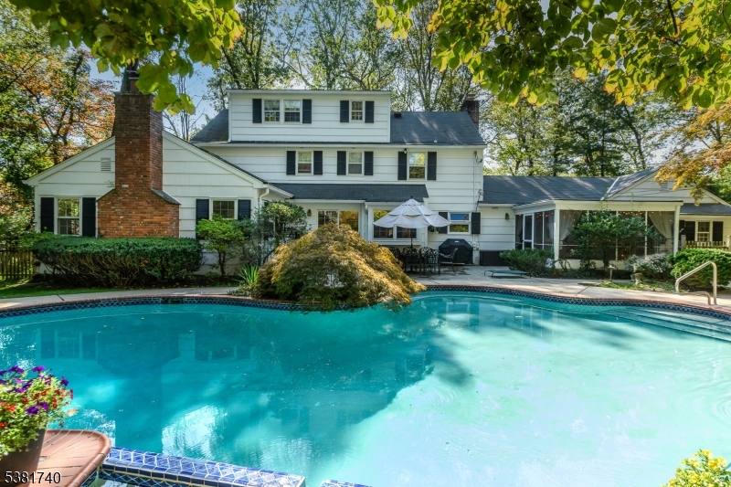 SUPER TRADITIONAL COLONIAL SET ON LARGE PRIVATE WOODED LOT OFFERS EH, LR, FDR, COUNTRY EIK W/ SLIDER LEADING TO PATIO & IN-GROUND POOL. FR W/ FPL, CATHEDRAL CEILING W/ SKYLIGHTS. OFFICE/DEN FPL PARQUET FLOOR & H/W FLOORS THRUOUT EXCEPT FR. ENCLOSED PORCH, MUD RM & PR. 2ND FLOOR CONSISTS OF 3 BR'S W/ DOUBLE CLOSETS. NEWER HALLWAY BATH 1-1/2 YEARS OLD. MBR W/ WIC & FULL BATH. 3RD FLOOR HAS A GUEST SUITE LARGE BR W/ FULL BATH & AND ATTIC /STORAGE.FULL FINISHED BASEMENT W/ LAUNDRY. GAS HW HEATER 2022 , TWO CAR OVERSIZED GARAGE, PARKING FOR 10 CARS. .SHORT WALK TO TOWN SKATING POND. INTERIOR & EXTERIOR RECENTLY PAINTED-AGENTS & CLIENTS, PLEASE PULL UP DRIVEWAY-LOTS OF PARKING-A MUST SEE.